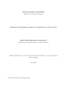 | Citer en APA 7: | Charpigny, S. E. B. (2024). Intégration d'apprentissage machine à un algorithme de recherche locale [Mémoire de maîtrise, Polytechnique Montréal]. PolyPublie. https://publications.polymtl.ca/59451/ |