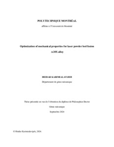 | Citer en APA 7: | Karimialavijeh, H. (2024). Optimization of Mechanical Properties for Laser Powder Bed Fusion A20X Alloy [Thèse de doctorat, Polytechnique Montréal]. PolyPublie. https://publications.polymtl.ca/59455/ |