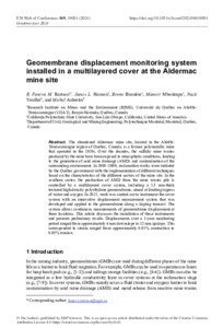 | Citer en APA 7: | Rarison, R. F. M., Hanson, J. L., Bussière, B., Mbonimpa, M., Yeşiller, N., & Aubertin, M. (avril 2024). Geomembrane displacement monitoring system installed in a multilayered cover at the Aldermac mine site [Communication écrite]. 5th Pan-American Conference on Geosynthetics (GeoAmericas 2024), Toronto, ON, Canada (11 pages). Publié dans E3S Web Conferences, 569. https://doi.org/10.1051/e3sconf/202456919001 |