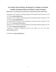 | Citer en APA 7: | Naseri, H., Waygood, O., Patterson, Z., Alousi-Jones, M., & Wang, B. (2024). Travel mode choice prediction: developing new techniques to prioritize variables and interpret black-box machine learning techniques. Transportation Planning and Technology, 48(3), 582-605. https://doi.org/10.1080/03081060.2024.2411611 |