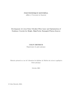 | Citer en APA 7: | Dietrich, C. (2024). Development of a Low-Noise Ultrafast Fiber Laser and Optimization of Nonlinear Crystals for Bright, High-Purity Entangled Photon Sources [Mémoire de maîtrise, Polytechnique Montréal]. PolyPublie. https://publications.polymtl.ca/59633/ |