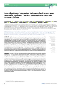 | Citer en APA 7: | Gourdeau, A., Prush, V., Rowe, C. D., Nackers, C., Mark, H. F., Morris, I., Rosset, P., Lamothe, M., Chouinard, L., & Tarling, M. S. (2024). Investigation of suspected Holocene fault scarp near Montréal, Québec: The first paleoseismic trench in eastern Canada. Seismica, 3(2). https://doi.org/10.26443/seismica.v3i2.1179 |