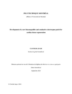 | Citer en APA 7: | Jugie, C. (2024). Development of a New Biocompatible and Conductive Electrospun Patch for Cardiac Tissue Regeneration [Mémoire de maîtrise, Polytechnique Montréal]. PolyPublie. https://publications.polymtl.ca/59885/ |