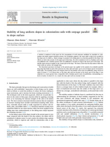 | Citer en APA 7: | Abou-Samra, G., & Silvestri, V. (2024). Stability of long uniform slopes in cohesionless soils with seepage parallel to slope surface. Results in Engineering, 24, 103155 (8 pages). https://doi.org/10.1016/j.rineng.2024.103155 |