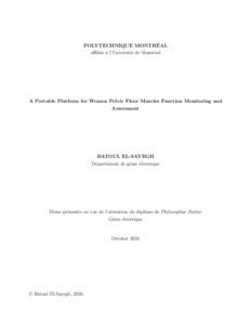 | Citer en APA 7: | El-Sayegh, B. (2024). A Portable Platform for Women Pelvic Floor Muscles Function Monitoring and Assessment [Thèse de doctorat, Polytechnique Montréal]. PolyPublie. https://publications.polymtl.ca/61591/ |