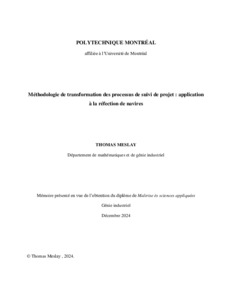 | Citer en APA 7: | Meslay, T. (2024). Méthodologie de transformation des processus de suivi de projet : application à la réfection de navires [Mémoire de maîtrise, Polytechnique Montréal]. PolyPublie. https://publications.polymtl.ca/61718/ |