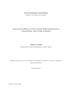 | Citer en APA 7: | Vaziri, M. (2024). Improving the Efficiency of Deep Learning Model Implementations Using Hardware Aware Design Techniques [Mémoire de maîtrise, Polytechnique Montréal]. PolyPublie. https://publications.polymtl.ca/61861/ |