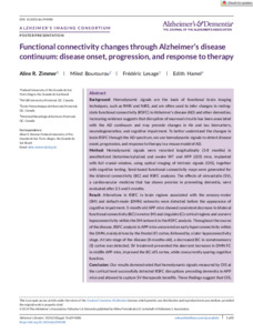 | Citer en APA 7: | Zimmer, A. R., Bourourou, M., Lesage, F., & Hamel, É. (2024). Functional connectivity changes through Alzheimer's disease continuum: disease onset, progression, and response to therapy. Alzheimer's & Dementia, 20(S9), e094088 (3 pages). https://doi.org/10.1002/alz.094088 |