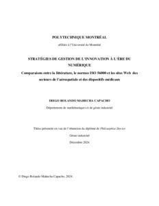 | Citer en APA 7: | Mahecha Capacho, D. R. (2024). Stratégies de gestion de l'innovation à l'ère du numérique Analyse académique de la norme ISO 56000 et des sites web dans les secteurs aérospatial et de dispositifs médicaux [Thèse de doctorat, Polytechnique Montréal]. PolyPublie. https://publications.polymtl.ca/61880/ |