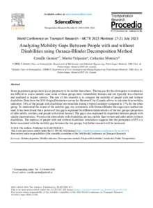 | Citer en APA 7: | Garnier, C., Trépanier, M., & Morency, C. (2025). Analyzing mobility Gaps between people with and without disabilities using Oaxaca-Blinder decomposition method. Transportation Research Procedia, 82, 2850-2864. Présentée à World Conference on Transport Research (WCTR 2023), Montréal, Québec. https://doi.org/10.1016/j.trpro.2024.12.223 |
