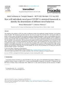 | Citer en APA 7: | Malekzadehnooghabi, H., & Morency, C. (2025). How will individuals travel post-COVID? A statistical framework to identify the determinants of different travel behaviors. Transportation Research Procedia, 82, 2075-2088. Présentée à World Conference on Transport Research (WCTR 2023), Montréal, Québec. https://doi.org/10.1016/j.trpro.2024.12.173 |