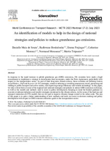 | Citer en APA 7: | de Souza, D. M., Boukelouha, R., Frejinger, E., Morency, C., Mousseau, N., & Trépanier, M. (juillet 2023). An identification of models to help in the design of national strategies and policies to reduce greenhouse gas emissions. [Communication écrite]. World Conference on Transport Research (WCTR 2023), Montréal, Québec. Publié dans Transportation Research Procedia, 82. https://doi.org/10.1016/j.trpro.2024.12.094 |