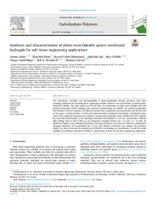 | Citer en APA 7: | Jafari, A., Bhatt, K., Niknezhad, S. V., Ajji, A., Griffith, M., Andelfinger, G., Bencherif, S. A., & Savoji, H. (2025). Synthesis and characterization of photo-cross-linkable quince seed-based hydrogels for soft tissue engineering applications. Carbohydrate Polymers, 352, 123140 (13 pages). https://doi.org/10.1016/j.carbpol.2024.123140 |