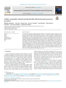 The Automatic Dependent Surveillance-Broadcast (ADS-B) is a surveillance technology mandated in many airspaces. It improves safety, increases efficiency and reduces air traffic congestion by broadcasting aircraft navigation data. Yet, ADS-B is vulnerable to spoofing attacks as it lacks mechanisms to ensure the integrity and authenticity of the data being supplied. None of the existing cryptographic solutions fully meet the backward compatibility and bandwidth preservation requirements of the standard. Hence, we propose the Compatible Authenticated Bandwidth-efficient Broadcast protocol for ADS-B (CABBA), an improved approach that integrates TESLA, phase-overlay modulation techniques and certificate-based PKI. As a result, entity authentication, data origin authentication, and data integrity are the security services that CABBA offers. To assess compliance with the standard, we designed an SDR-based implementation of CABBA and performed backward compatibility tests on commercial and general aviation (GA) ADS-B in receivers. Besides, we calculated the 1090ES band’s activity factor and analyzed the channel occupancy rate according to ITU-R SM.2256-1 recommendation. Also, we performed a bit error rate analysis of CABBA messages. The results suggest that CABBA is backward compatible, does not incur significant communication overhead, and has an error rate that is acceptable for Eb/No values above 14 dB.