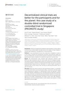 Methods: A fully decentralized clinical trial conducted in Singapore is used as a case study to evaluate the operational outcomes, environmental impact (via life cycle assessment), and participants experience (qualitative interviews) of the decentralized model compared to a traditional study with in-person visits.