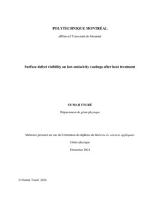 | Citer en APA 7: | Touré, O. (2024). Surface Defect Visibility on Low-Emissivity Coatings After Heat Treatment [Mémoire de maîtrise, Polytechnique Montréal]. PolyPublie. https://publications.polymtl.ca/61984/ |