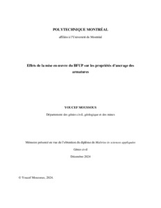 | Citer en APA 7: | Moussous, Y. (2024). Effets de la mise en oeuvre du BFUP sur les propriétés d'ancrage des armatures [Mémoire de maîtrise, Polytechnique Montréal]. PolyPublie. https://publications.polymtl.ca/62045/ |