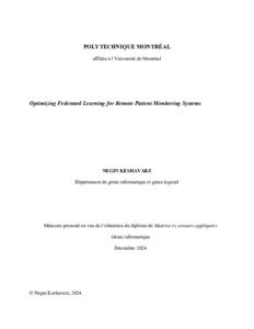 | Citer en APA 7: | Keshavarz, N. (2024). Optimizing Federated Learning for Remote Patient Monitoring Systems [Mémoire de maîtrise, Polytechnique Montréal]. PolyPublie. https://publications.polymtl.ca/62473/ |