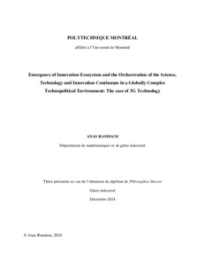 | Citer en APA 7: | Ramdani, A. (2024). Emergence of Innovation Ecosystem and the Orchestration of the Science, Technology and Innovation Continuum in a Globally Complex Technopolitical Environment: The Case of 5G Technology [Thèse de doctorat, Polytechnique Montréal]. PolyPublie. https://publications.polymtl.ca/62496/ |