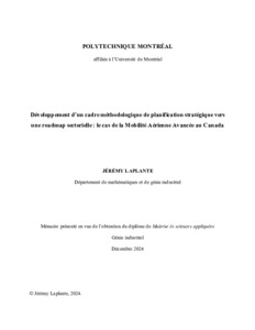 | Citer en APA 7: | Laplante, J. (2024). Développement d'un cadre méthodologique de planification stratégique vers une roadmap sectorielle : le cas de la mobilité aérienne avancée au Canada [Mémoire de maîtrise, Polytechnique Montréal]. PolyPublie. https://publications.polymtl.ca/62498/ |