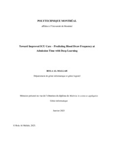 | Citer en APA 7: | Al-Mallah, R. (2025). Toward Improved ICU Care – Predicting Blood Draw Frequency at Admission Time with Deep Learning [Mémoire de maîtrise, Polytechnique Montréal]. PolyPublie. https://publications.polymtl.ca/62550/ |