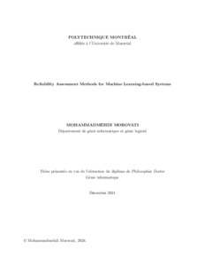 | Citer en APA 7: | Morovati, M. (2024). Reliability Assessment Methods for Machine Learning-Based Systems [Thèse de doctorat, Polytechnique Montréal]. PolyPublie. https://publications.polymtl.ca/62551/ |