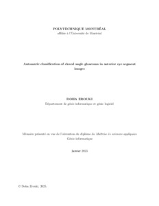 | Citer en APA 7: | Zrouki, D. (2025). Automatic Classification of Closed Angle Glaucoma in Anterior Eye Segment Images [Mémoire de maîtrise, Polytechnique Montréal]. PolyPublie. https://publications.polymtl.ca/62679/ |