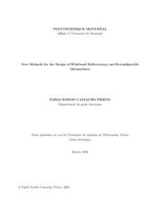 | Citer en APA 7: | Camacho Prieto, P. E. (2025). New Methods for the Design of Wideband Reflectarrays and Reconfigurable Metasurfaces [Thèse de doctorat, Polytechnique Montréal]. PolyPublie. https://publications.polymtl.ca/62690/ |