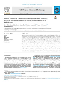 | Citer en APA 7: | Ghalandarzadeh, S., Courcelles, B., Boudreault, R., Arenson, L. U., & Maghoul, P. (2025). Effect of freeze-thaw cycles on engineering properties of nano-SiO₂ enhanced microbially induced calcium carbonate precipitation in kaolinite clay. Cold Regions Science and Technology, 234, 104459 (14 pages). https://doi.org/10.1016/j.coldregions.2025.104459 |