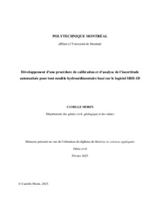 | Citer en APA 7: | Morin, C. (2025). Développement d'une procédure de calibration et d'analyse de l'incertitude automatisée pour tout modèle hydrosédimentaire basé sur le logiciel SRH-1D [Mémoire de maîtrise, Polytechnique Montréal]. PolyPublie. https://publications.polymtl.ca/63338/ |
