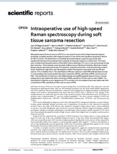 | Citer en APA 7: | Dulude, J.-P., Le Moël, A., Dallaire, F., Doyon, J., Urmey, K., Marple, E., Leblanc, G., Basile, G., Mottard, S., Isler, M., Leblond, F., & Gervais, M.-K. (2025). Intraoperative use of high-speed Raman spectroscopy during soft tissue sarcoma resection. Scientific Reports, 15, 8789 (13 pages). https://doi.org/10.1038/s41598-025-93089-z |