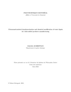 | Cite in APA 7: | Schieppati, D. (2025). Ultrasound-Assisted Depolymerization and Chemical Modification of Waste Lignin for Value-Added Products Manufacturing [Ph.D. thesis, Polytechnique Montréal]. PolyPublie. https://publications.polymtl.ca/63424/ |