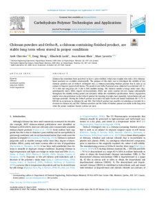 | Citer en APA 7: | Chevrier, A., Wang, D., Ladd, E., Blais, J.-S., & Lavertu, M. (2025). Chitosan powders and Ortho-R, a chitosan-containing finished product, are stable long term when stored in proper conditions. Carbohydrate Polymer Technologies and Applications, 10, 100777 (12 pages). https://doi.org/10.1016/j.carpta.2025.100777 |