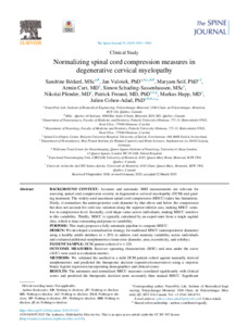 | Citer en APA 7: | Bédard, S., Valošek, J., Seif, M., Curt, A., Schading-Sassenhausen, S., Pfender, N., Freund, P., Hupp, M., & Cohen-Adad, J. (2025). Normalizing spinal cord compression measures in degenerative cervical myelopathy. The Spine Journal, 25(9), 1951-1963. https://doi.org/10.1016/j.spinee.2025.03.012 |