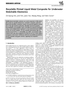 | Citer en APA 7: | Kim, C., Kim, J., Fan, J., Wang, M., & Cicoira, F. (2025). Recyclable printed liquid metal composite for underwater stretchable electronics. Small Science, 5(5), 2400553 (10 pages). https://doi.org/10.1002/smsc.202400553 |
