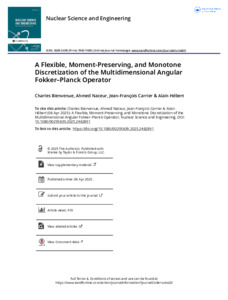 | Citer en APA 7: | Bienvenue, C., Naceur, A., Carrier, J.-F., & Hébert, A. (2025). A flexible, moment-preserving, and monotone discretization of the multidimensional angular Fokker–Planck operator. Nuclear Science and Engineering, 18 pages. https://doi.org/10.1080/00295639.2025.2462891 |