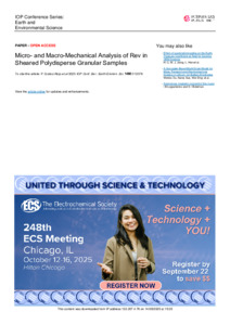 | Citer en APA 7: | Quiroz-Rojo, P., Cantor, D., Renouf, M., Azéma, É., & Ovalle, C. (2025). Micro- and macro-mechanical analysis of rev in sheared polydisperse granular samples. [Autre type de communication de conférence]. IOP Conference Series Earth and Environmental Science, 1480(1), 012076 (4 pages). Présentée à 5th International Symposium on Geomechanics from Micro to Macro (IS-Grenoble 2024), Grenoble, France. https://doi.org/10.1088/1755-1315/1480/1/012076 |