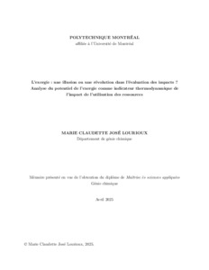 | Citer en APA 7: | Lourioux, M. C. J. (2025). L'exergie : une illusion ou une révolution dans l'évaluation des impacts ? Analyse du potentiel de l'exergie comme indicateur thermodynamique de l'impact de l'utilisation des ressources [Mémoire de maîtrise, Polytechnique Montréal]. PolyPublie. https://publications.polymtl.ca/64551/ |