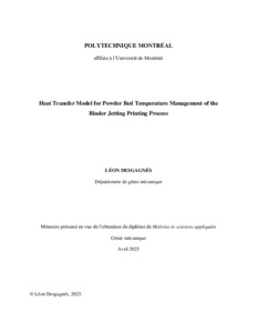 | Citer en APA 7: | Desgagnés, L. (2025). Heat Transfer Model for Powder Bed Temperature Management of the Binder Jetting Printing Process [Mémoire de maîtrise, Polytechnique Montréal]. PolyPublie. https://publications.polymtl.ca/64669/ |
