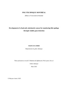 | Citer en APA 7: | Ameri, M. (2025). Development of a Food-Safe Colorimetric Sensor for Monitoring Fish Spoilage Through Volatile Gases Detection [Thèse de doctorat, Polytechnique Montréal]. PolyPublie. https://publications.polymtl.ca/65013/ |