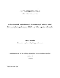 | Citer en APA 7: | Meftah, S. (2025). Caractérisation de la performance en service des chapes minces en bétons fibrés à ultra-hautes performances (BFUP) pour dalles de pont et industrielles [Mémoire de maîtrise, Polytechnique Montréal]. PolyPublie. https://publications.polymtl.ca/65566/ |