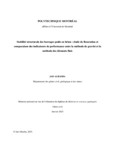 | Citer en APA 7: | Albasha, J. (2025). Stabilité structurale des barrages-poids en béton : étude de fissuration et comparaison des indicateurs de performance entre la méthode de gravité et la méthode des éléments finis [Mémoire de maîtrise, Polytechnique Montréal]. PolyPublie. https://publications.polymtl.ca/65704/ |