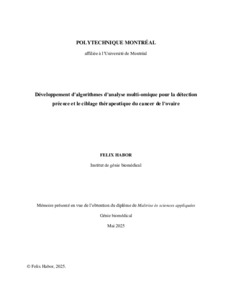 | Citer en APA 7: | Habor, F. (2025). Développement d'algorithmes d'analyse multi-omique pour la détection précoce et le ciblage thérapeutique du cancer de l'ovaire [Mémoire de maîtrise, Polytechnique Montréal]. PolyPublie. https://publications.polymtl.ca/65706/ |