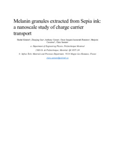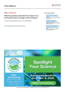 | Citer en APA 7: | Khaleel, S., Gao, Z., Camus, A., Isasmendi, J., Cavarroc-Weimer, M., & Santato, C. (2025). Melanin granules extracted from Sepia ink: A nanoscale study of charge carrier transport. Journal of Physics Materials, 8(3), 035002 (10 pages). https://doi.org/10.1088/2515-7639/add773 |