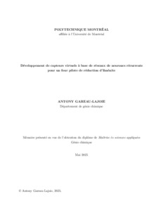 La première priorité des opérateurs de fours à arc électrique est la sécurité de leurs opérations. Ces fours peuvent servir à l’enrichissement de minerais tel que l’ilménite, une espèce miné-rale riche en titane. Leur utilisation nécessite une grande quantité de réactifs et d’énergie, représentant des gains de productivité potentiels importants. L’amélioration des opérations de ces procédés est donc prioritaire pour les industries utilisant ce type de four. Lorsque des essais doivent être menés en dehors des plages opérationnelles habituelles, il est possible de les réaliser sur un procédé de taille pilote pour limiter les risques pour la sécurité des employés, l’intégrité du four et/ou la qualité des produits. Malgré ces efforts, les fours à arc électrique de taille pilote demeurent des équipements comportant des risques importants, notamment, en ce qui concerne les hautes températures du bain de matière en fusion qu’ils contiennent et la dégradation des briques réfractaires si elles viennent en contact direct avec le bain en fusion. La surveillance de ce procédé est réalisée à l’aide de nombreux thermocouples et à l’aide de mesures manuelles de la largeur de bain : une variable de substitution à l’épaisseur de matière solide protégeant la paroi interne du four. À chacune des coulées, une analyse de la composition chimique de la scorie, phase riche en titane, est réalisée en laboratoire. Des analyses ponctuelles entre les coulées sont aussi réalisées. L’article 1 de ce mémoire par articles porte sur le développement de capteurs virtuels destinés à améliorer la sécurité de l’opération d’un four pilote de réduction d’ilménite. Deux modèles sont proposés : (1) un prédicteur de température de la paroi du four et (2) un estimateur de la largeur de bain. Tous deux sont basés sur une architecture de réseaux de neurones récurrents permettant une prédiction à partir d’autres signaux mesurés sur le procédé : les mesures de température et les consignes d’opération pour les boucles de contrôle de la puissance, de l’alimentation en minerai et de l’alimentation en agent réducteur. Une discussion de l’article est proposée et porte sur l’impact du partitionnement des données en jeux de calibration et de validation sur les performances du modèle de largeur de bain. L’article 2 du présent mémoire propose le développement d’un capteur virtuel permettant d’estimer en ligne la composition en dioxyde de titane de la scorie dans le four à partir de signaux de procédé. Le choix des algorithmes et des fonctionnalités intégrées à l’architecture du modèle d’apprentissage automatique proposé tient compte des phénomènes de transferts thermiques et des phénomènes thermochimiques de la réduction de l’ilménite. Une analyse comparative avec un modèle autorégressif de type ARMA est conduite afin de comparer les performances de la méthode proposée dans le chapitre de discussion de l’article.
