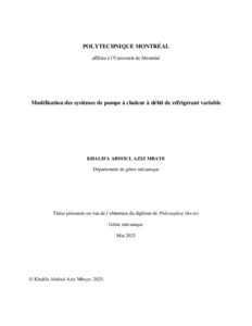 | Citer en APA 7: | Mbaye, K. A. A. (2025). Modélisation des systèmes de pompe à chaleur à débit de réfrigérant variable [Thèse de doctorat, Polytechnique Montréal]. PolyPublie. https://publications.polymtl.ca/65809/ |