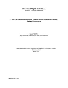 | Citer en APA 7: | Ung, K. (2025). Effects of Automated Diagnostic Tools on Human Performance during Failure Management [Thèse de doctorat, Polytechnique Montréal]. PolyPublie. https://publications.polymtl.ca/65821/ |