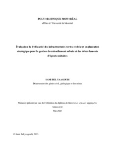 | Citer en APA 7: | Bel Yaagoubi, S. (2025). Évaluation de l'efficacité des infrastructures vertes et de leur implantation stratégique pour la gestion du ruissellement urbain et des débordements d'égouts unitaires [Mémoire de maîtrise, Polytechnique Montréal]. PolyPublie. https://publications.polymtl.ca/65827/ |