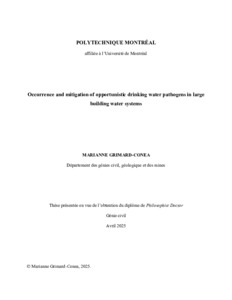 | Citer en APA 7: | Grimard-Conea, M. (2025). Occurrence and Mitigation of Opportunistic Drinking Water Pathogens in Large Building Water Systems [Thèse de doctorat, Polytechnique Montréal]. PolyPublie. https://publications.polymtl.ca/65832/ |