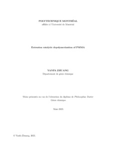 | Citer en APA 7: | Zhuang, Y. (2025). Extrusion Catalytic Depolymerization of PMMA [Thèse de doctorat, Polytechnique Montréal]. PolyPublie. https://publications.polymtl.ca/65859/ |